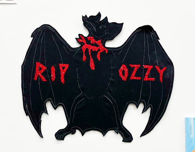 I'mmortal Combat, 2025, 90cm x 70cm, canvas, fabric, paint, mp3, headphones