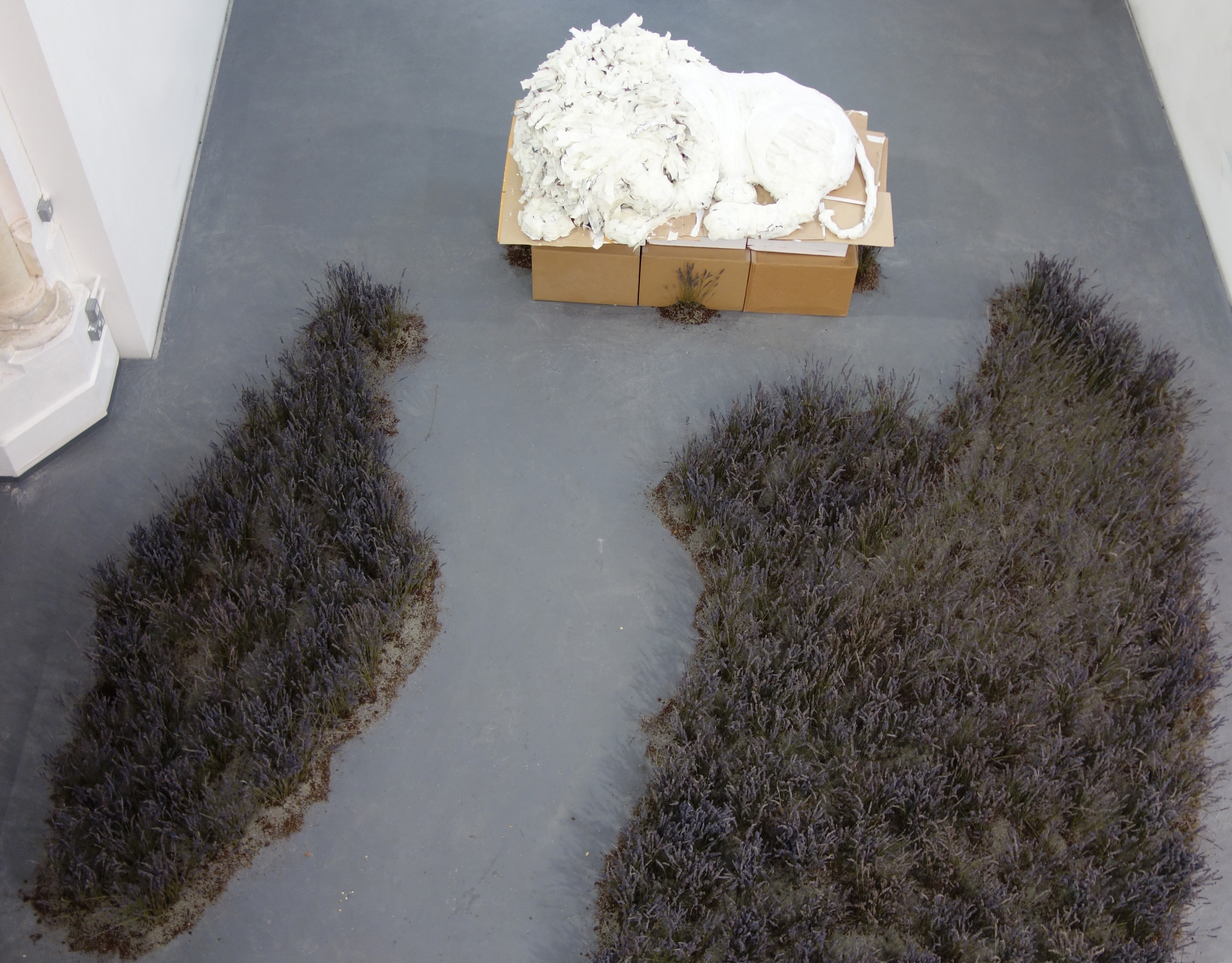 Horse 2017, size variable, aluminium foil, wire, cardboard, newspaper, electric tape, masking tape, lavender, laptop